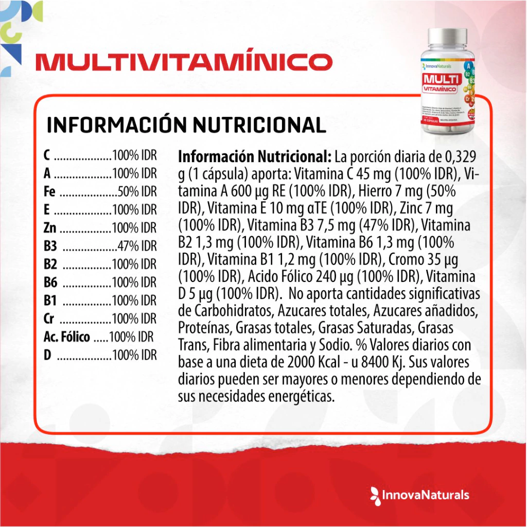 📋 MULTIVITAMÍNICO:Vit.C, E,A, B3,B6,B2,B1,D+Zinc+ Hierro+ Ác. Fólico+Cromo