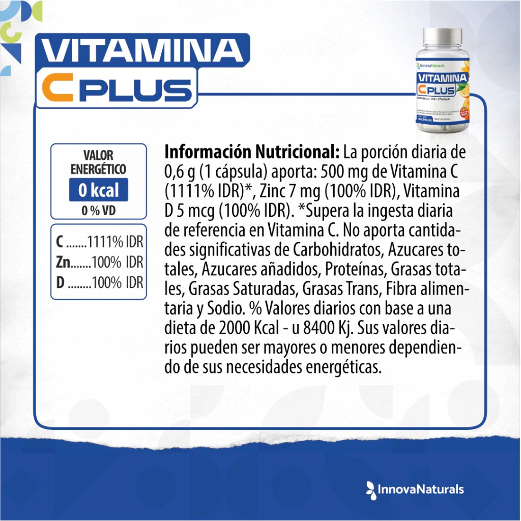📋 Vitamina C 500 mg, Zinc 7 mg, Vitamina D 5 mcg.